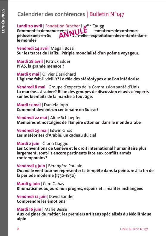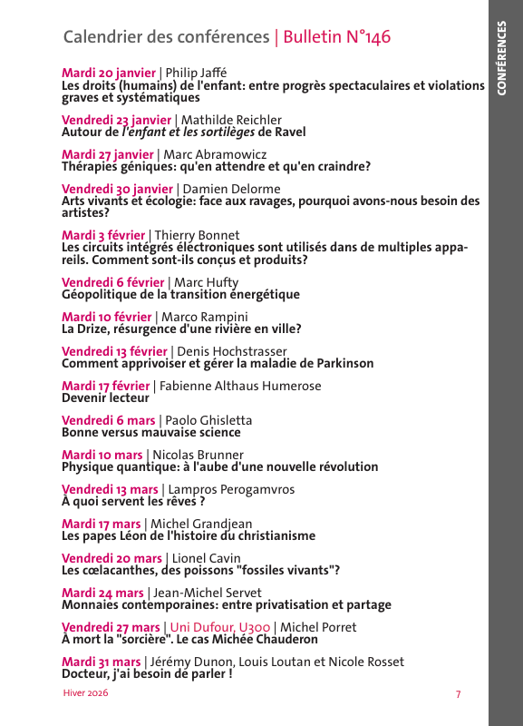 Le programme Uni3 de cet hiver vous propose un concentré de savoirs, de culture et d’explorations. Une saison pour nourrir votre curiosité avec des intervenants passionnés et des thèmes qui éclairent notre monde.